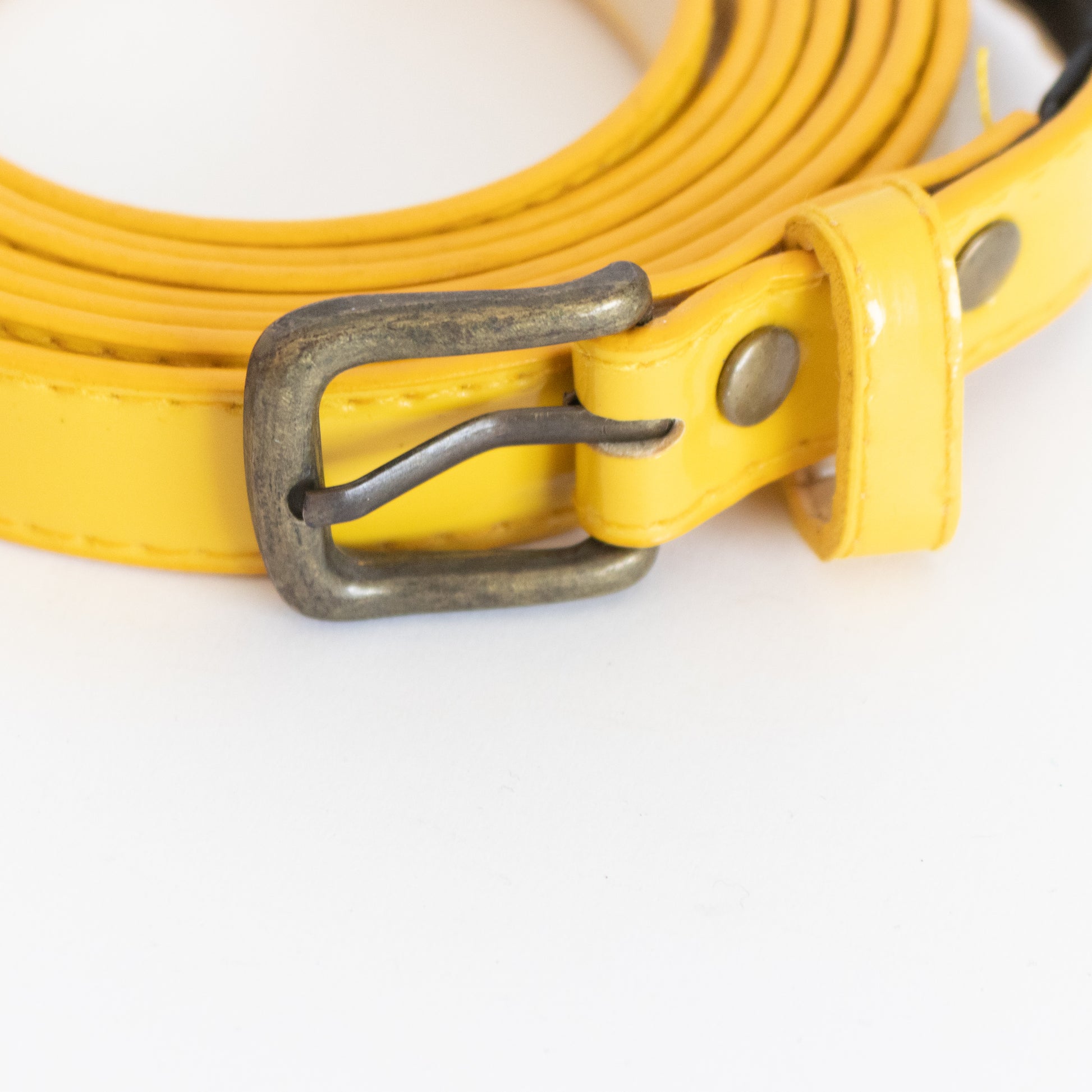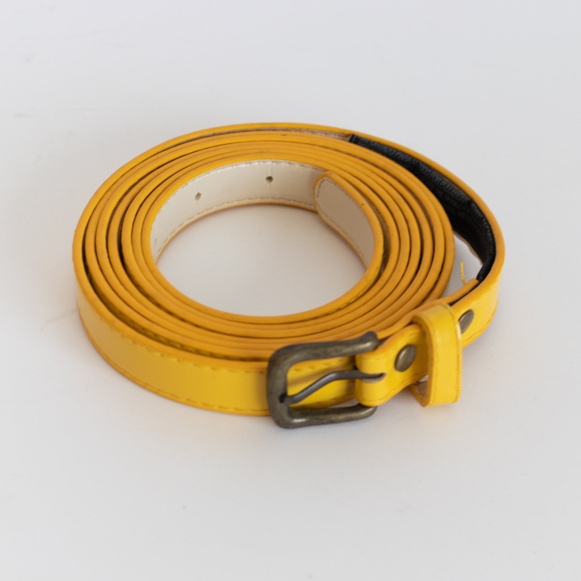 Cinto de duas voltas fino com fecho de fivela em tom acinzentado.