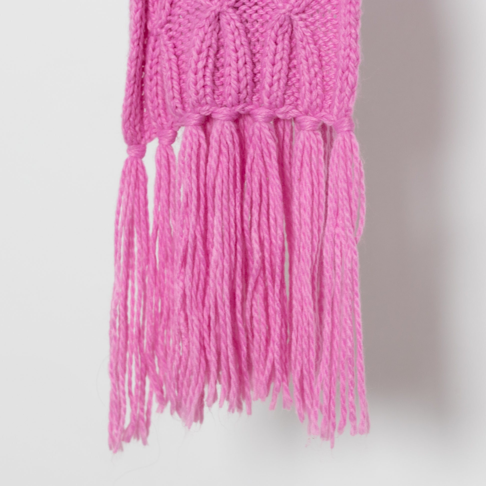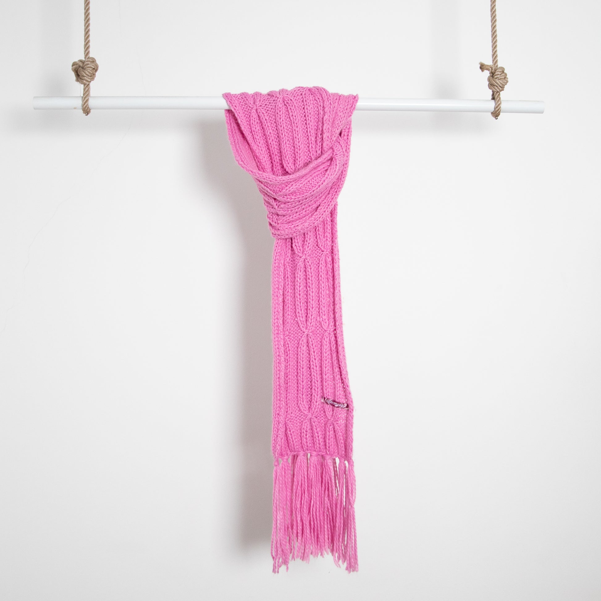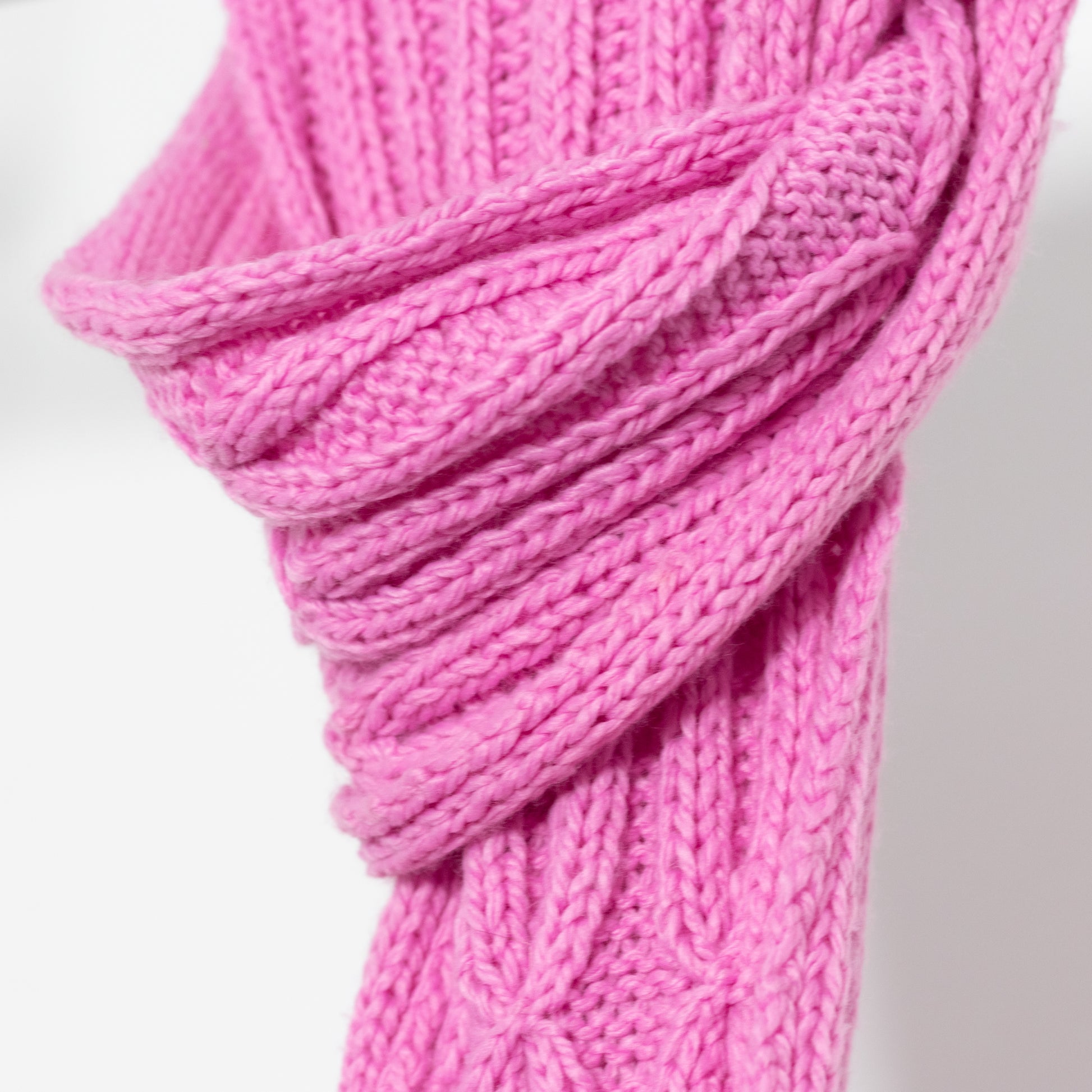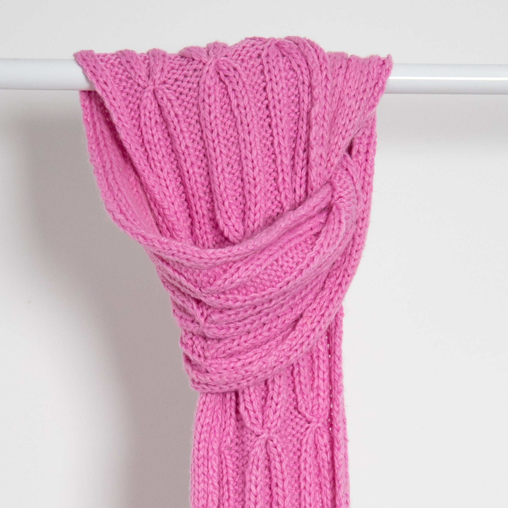 Scarf in a soft rib knit with a wool content in a Barbie pink hue. Short sides with bangs.