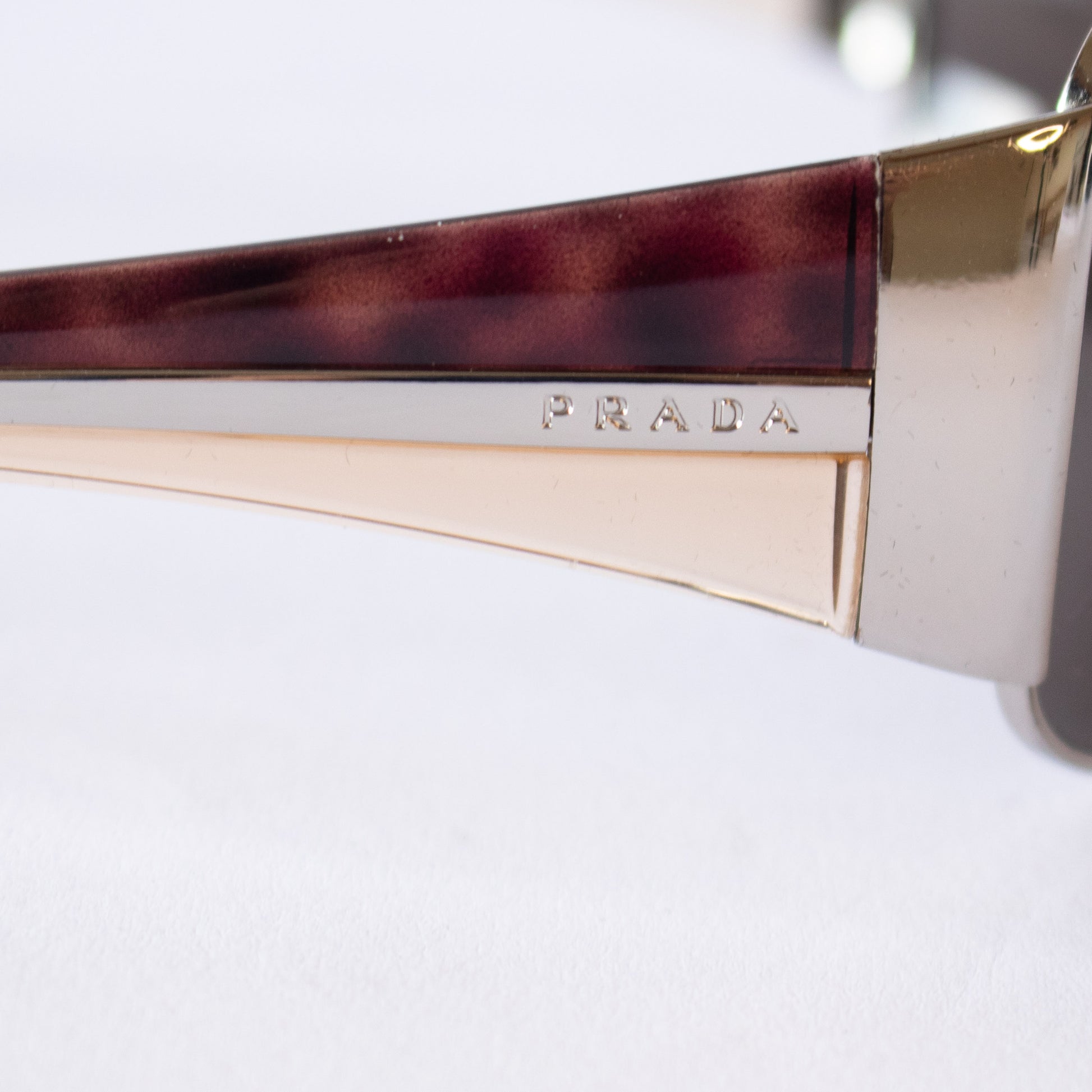 Óculos de sol com armação com padrão e encaixes metalizados. Lentes polarizadas com protecção UV. Marca pequena na lente, indicado na última fotografia.