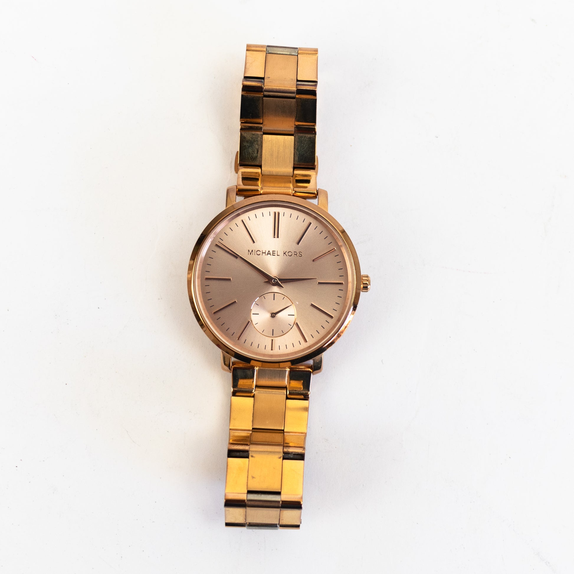 Relógio de design clássico, em aço rose gold com cronógrafo. Elos suplentes para aumentar a pulseira.