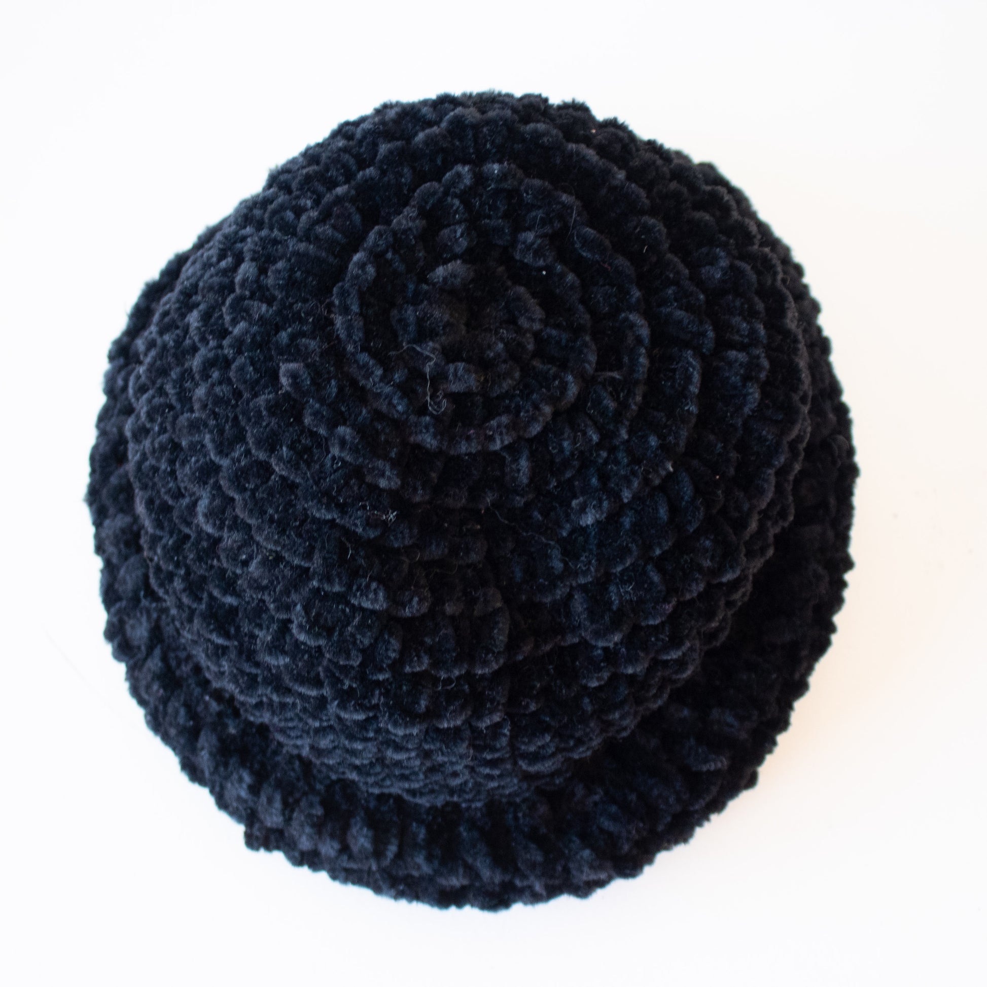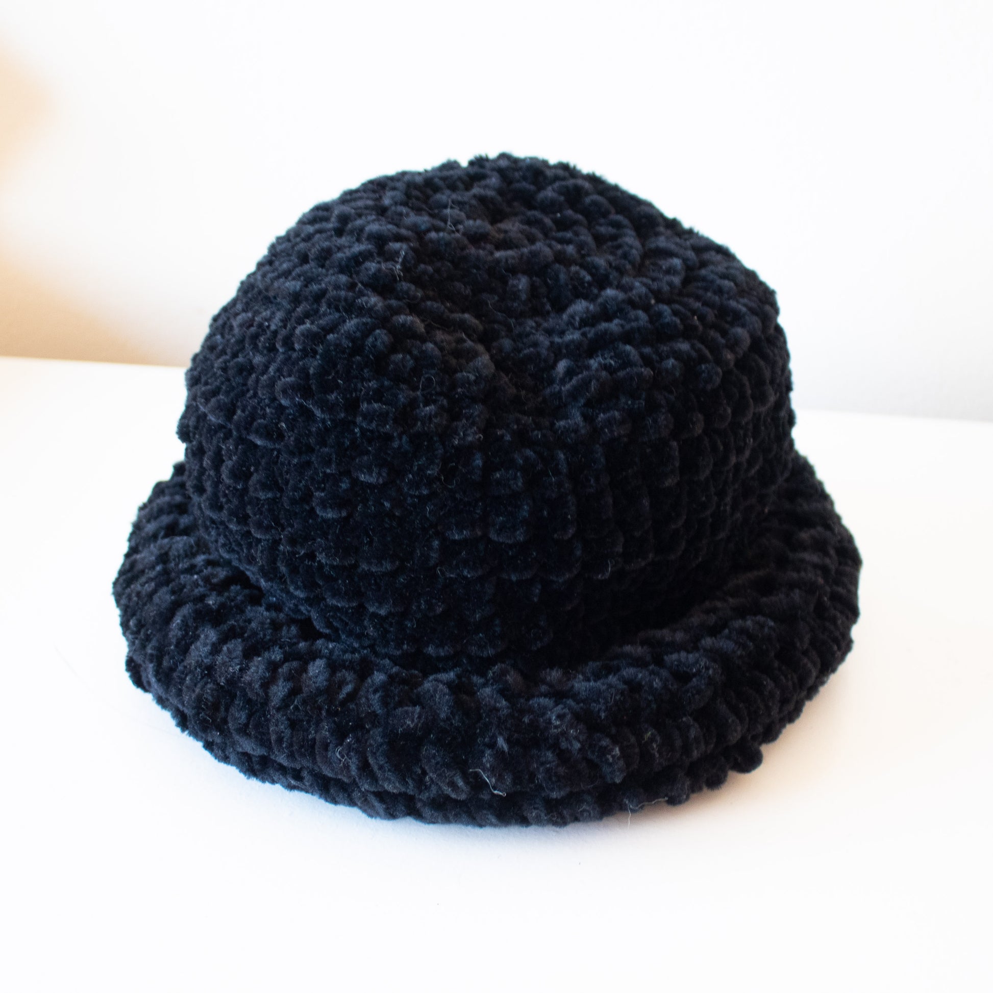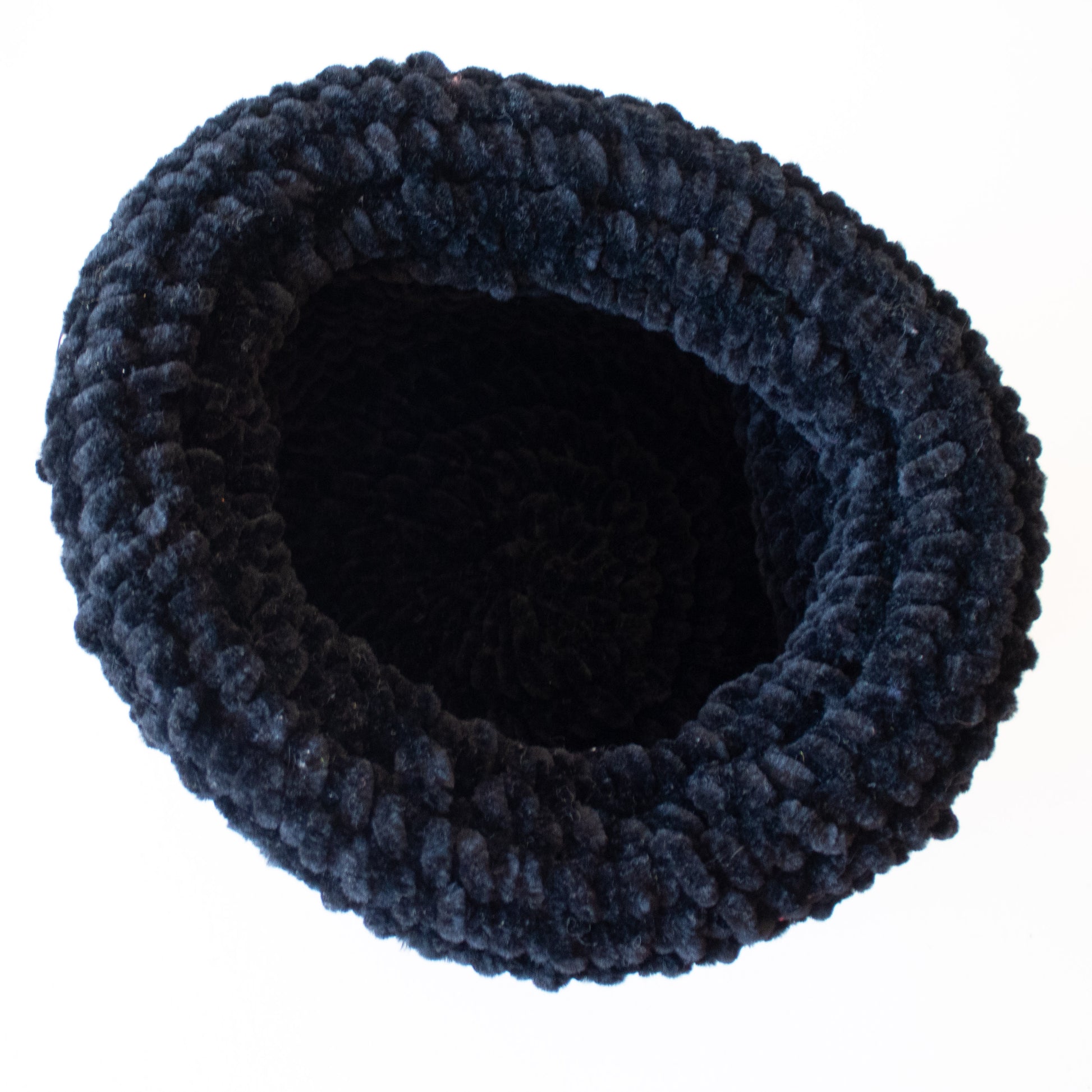 Chapéu bucket em algodão aveludado tricotado em tom azul preto.