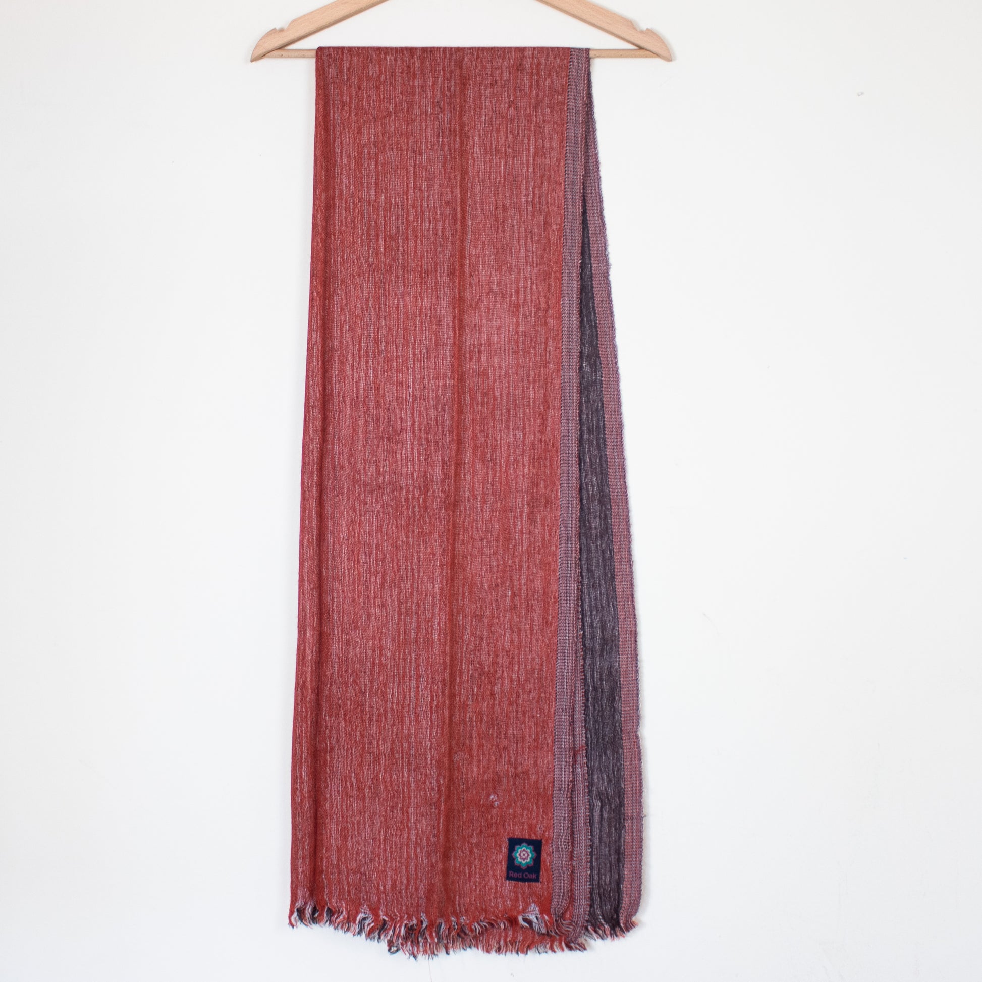 Écharpe em lã, reversível, suave e envolvente em tons bicolor. Com orlas sem acabamento e franja curta.