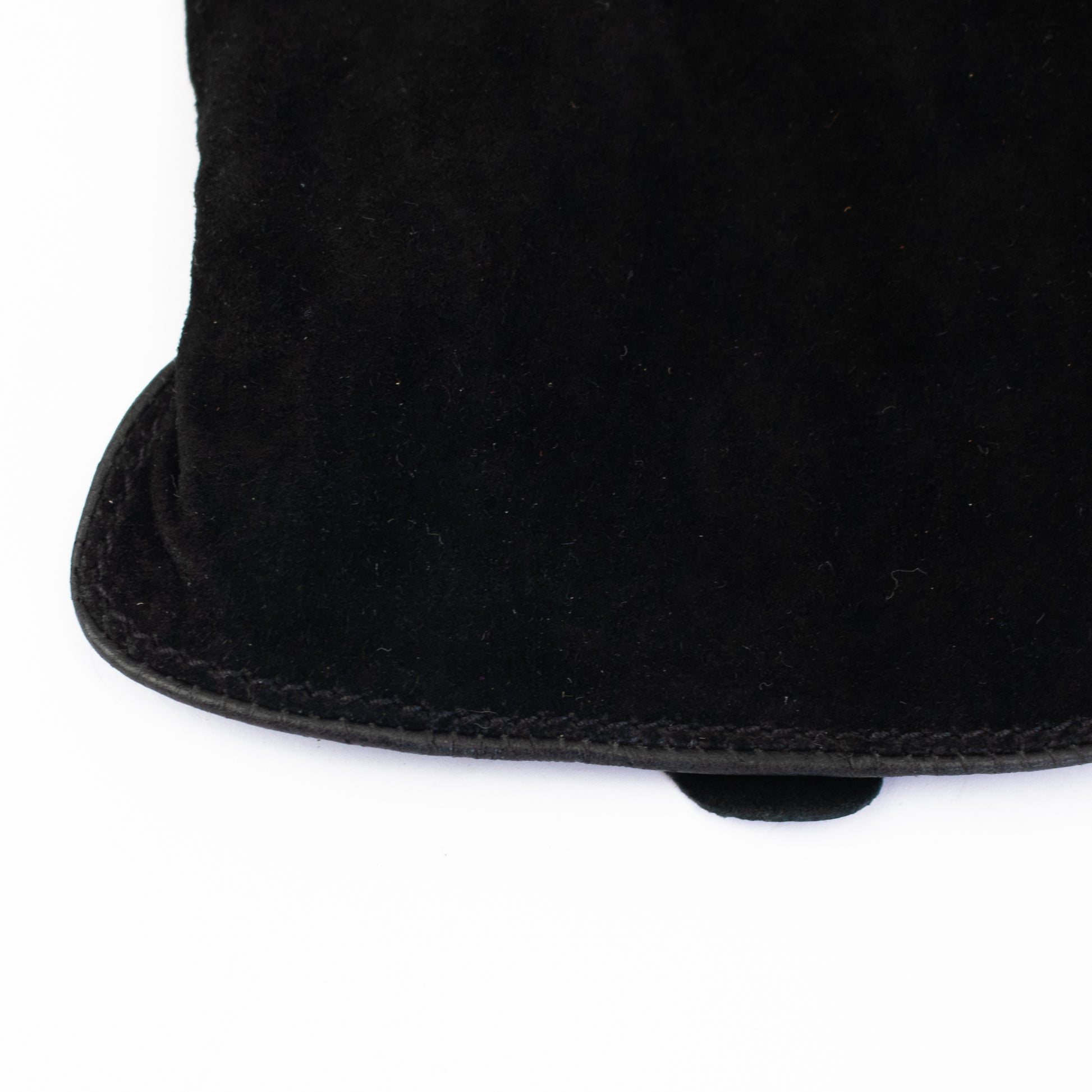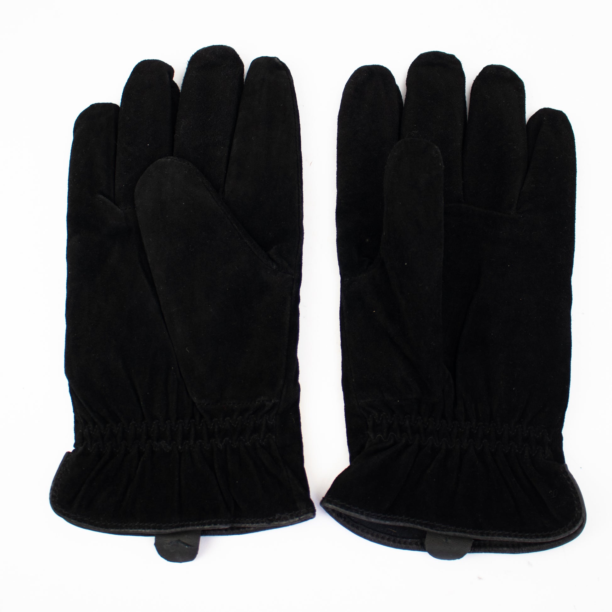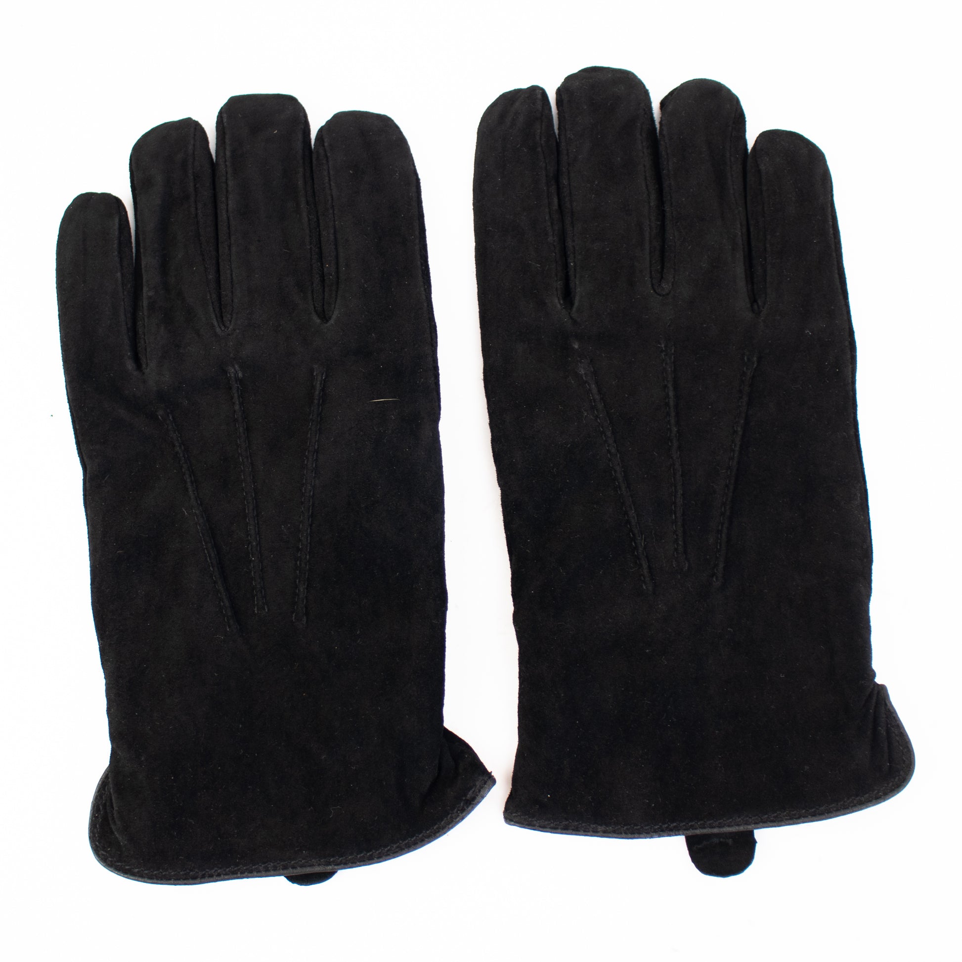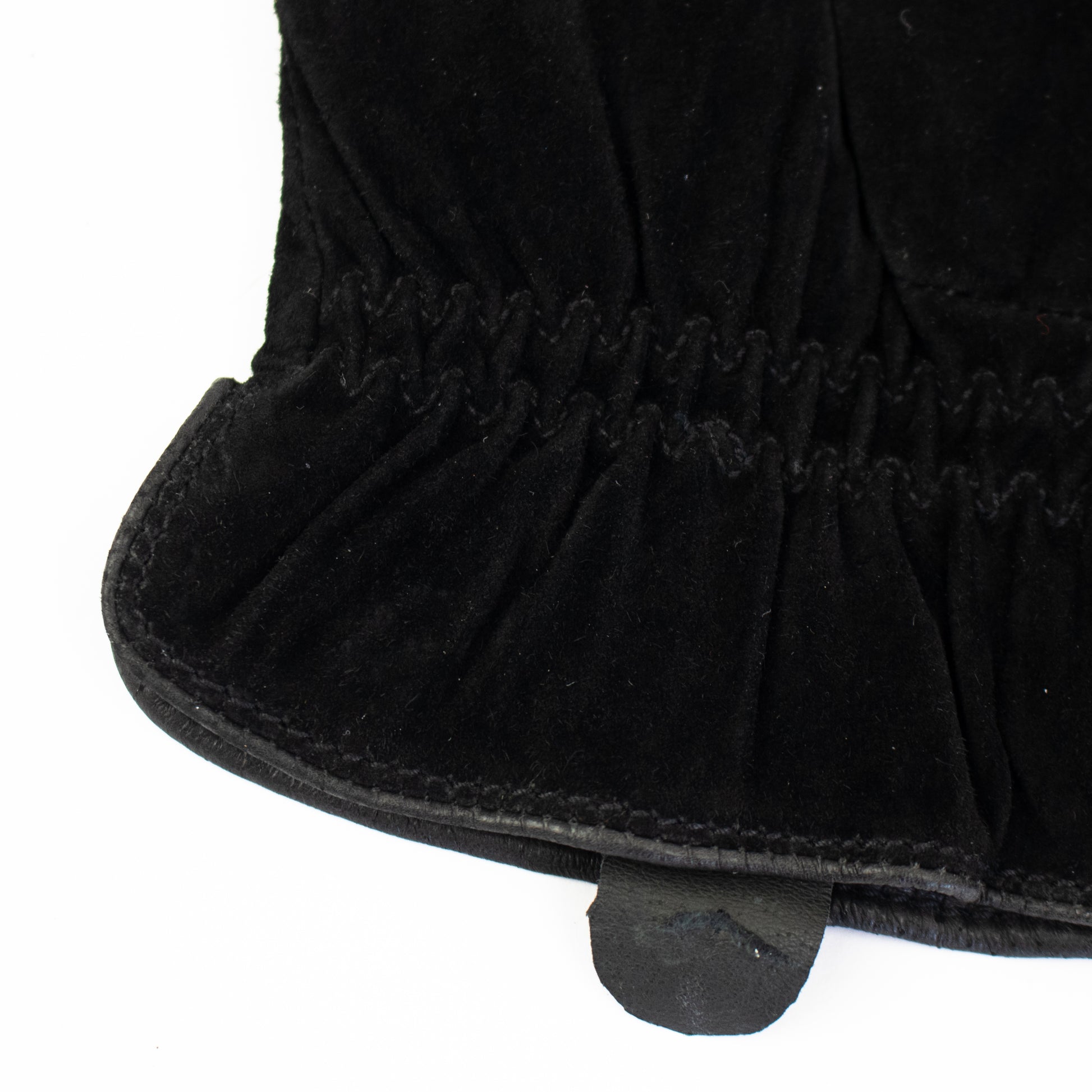 Um par de luvas em pele com acabamento em croute, em tom preto, com elástico fino nos pulsos para um bom ajuste.