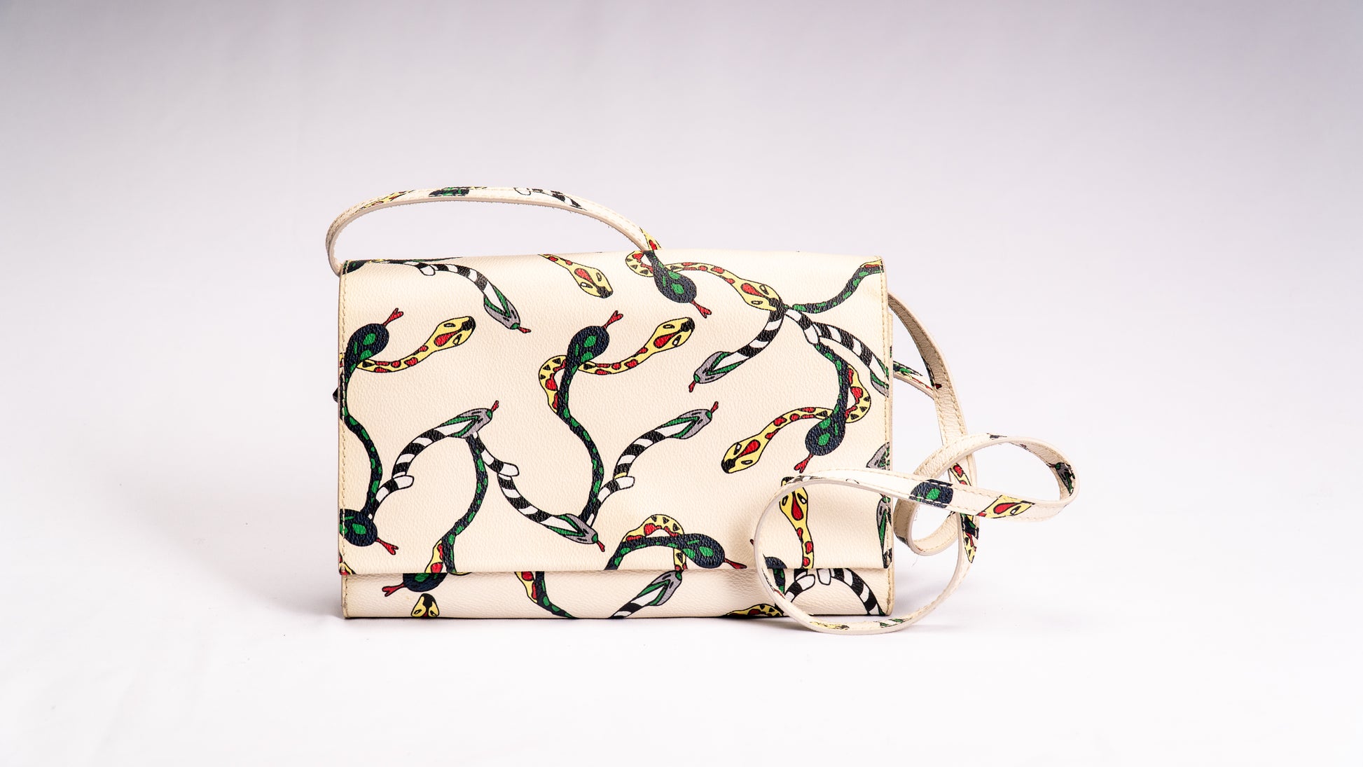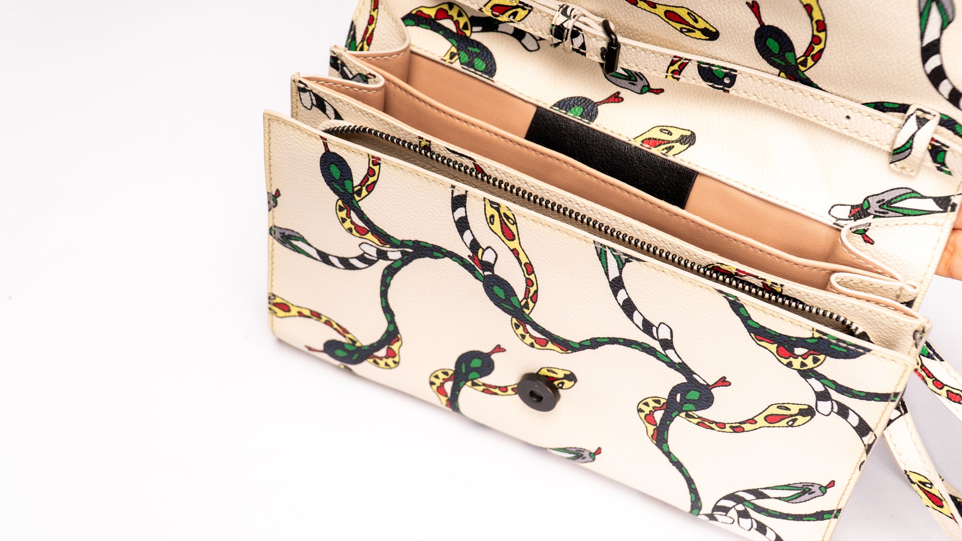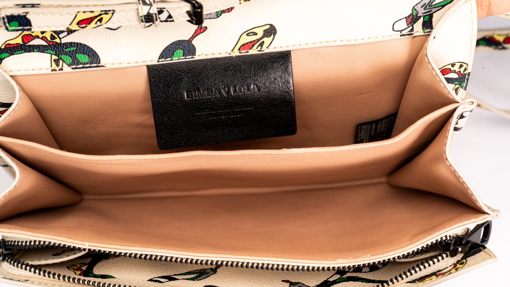 Mala tiracolo com alça ajustável. Fecho de botão de pressão. Inetrior com dois compartimentos abertos e um fechado com fecho éclair.