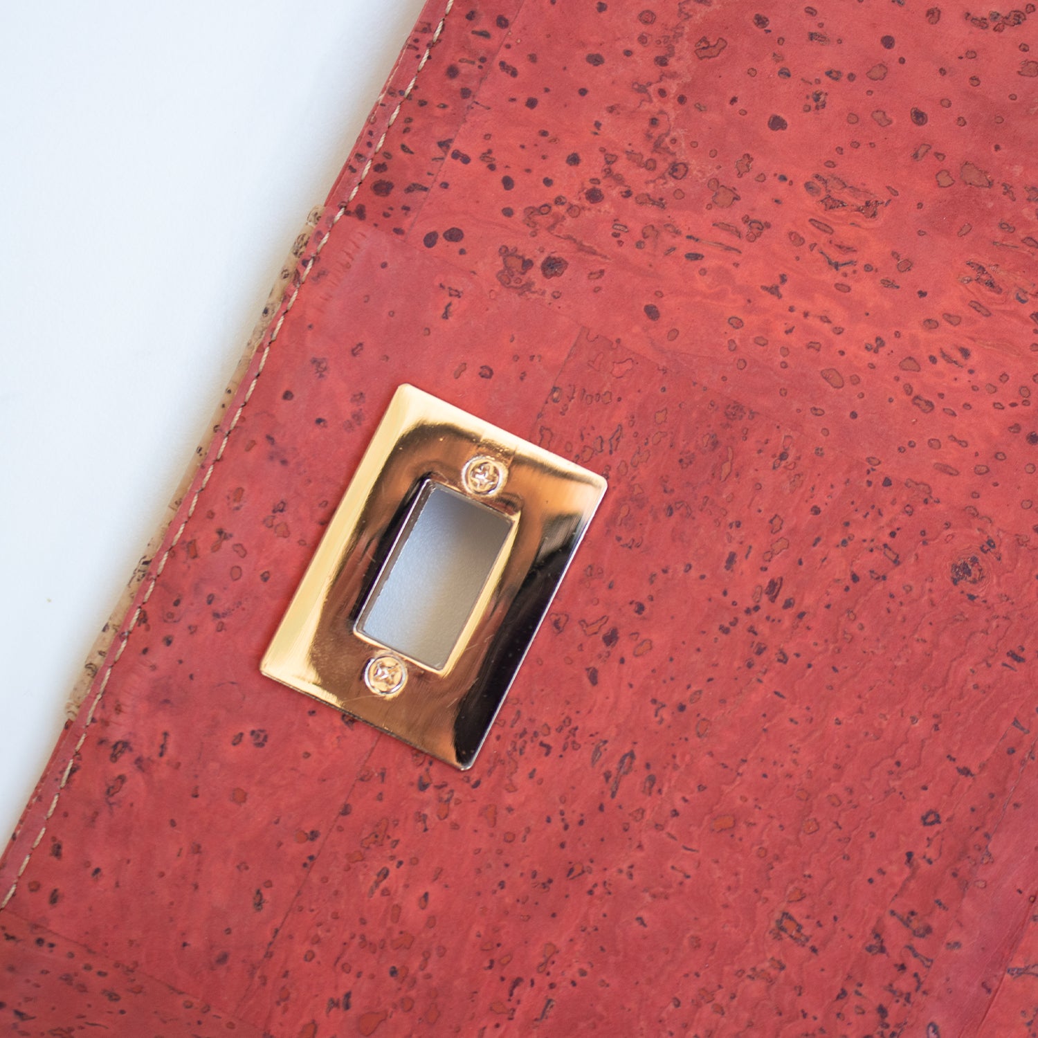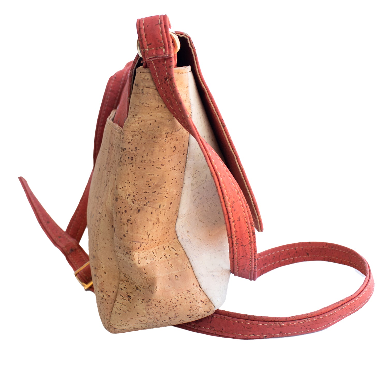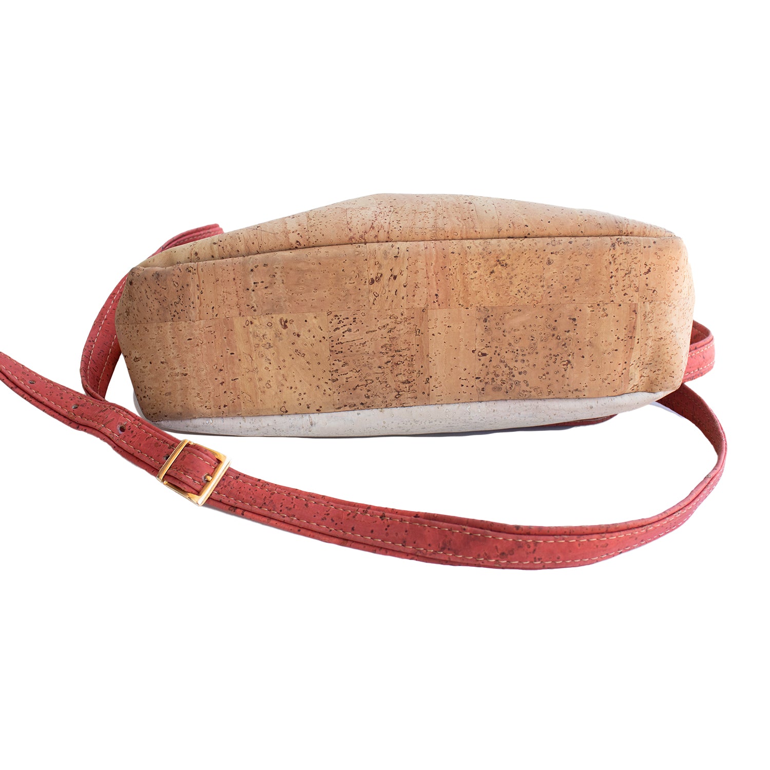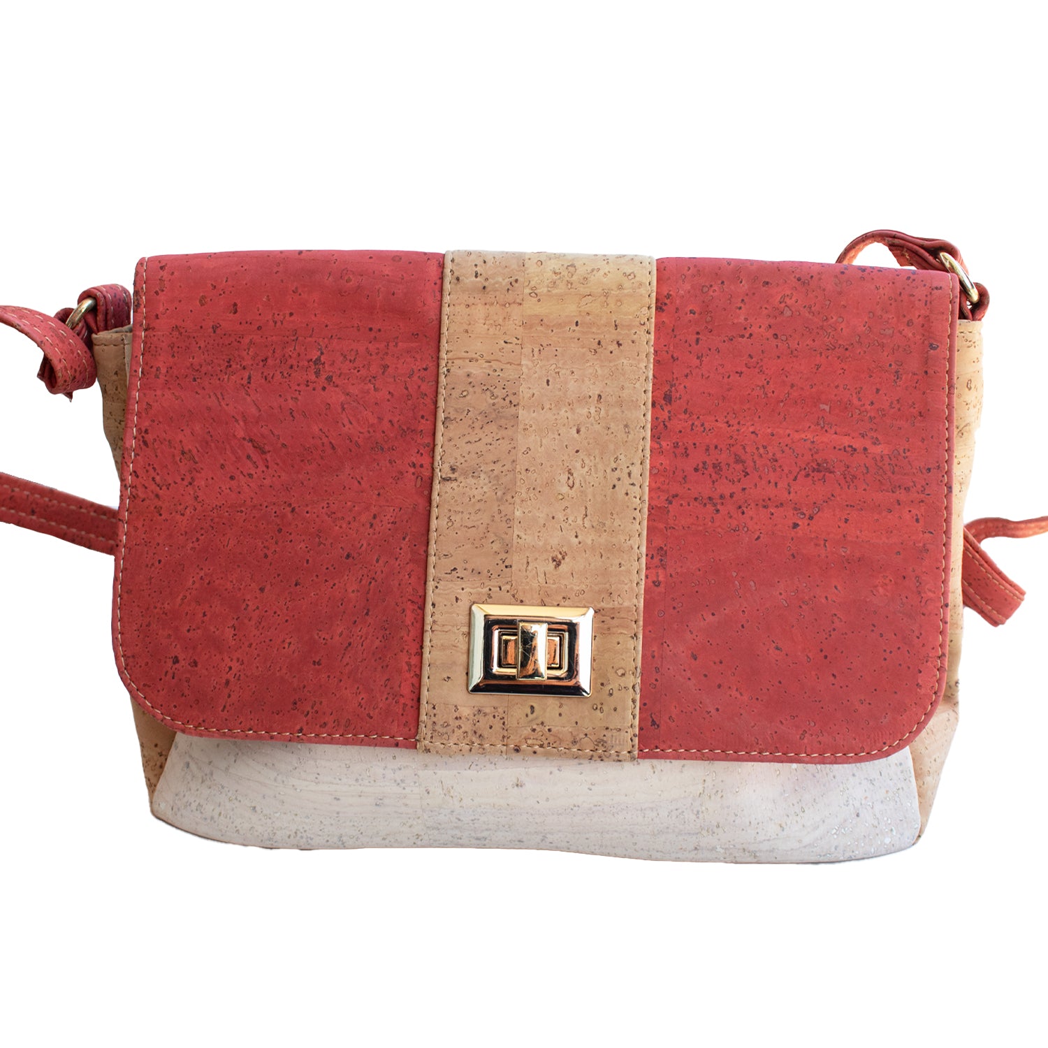 Mala de cortiça com alça tiracolo com fecho dourado.