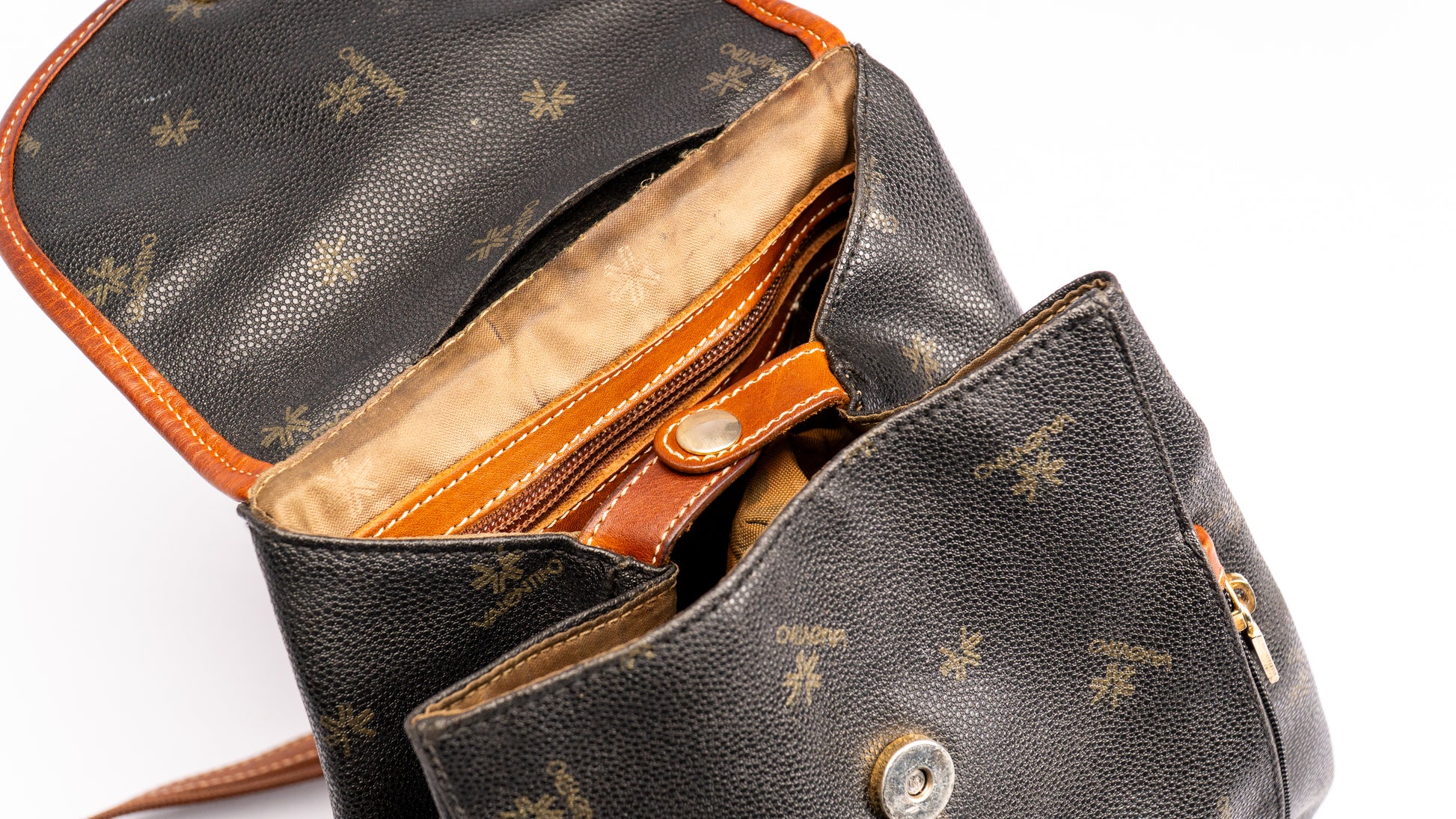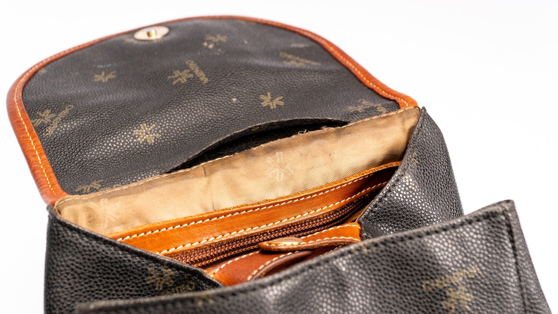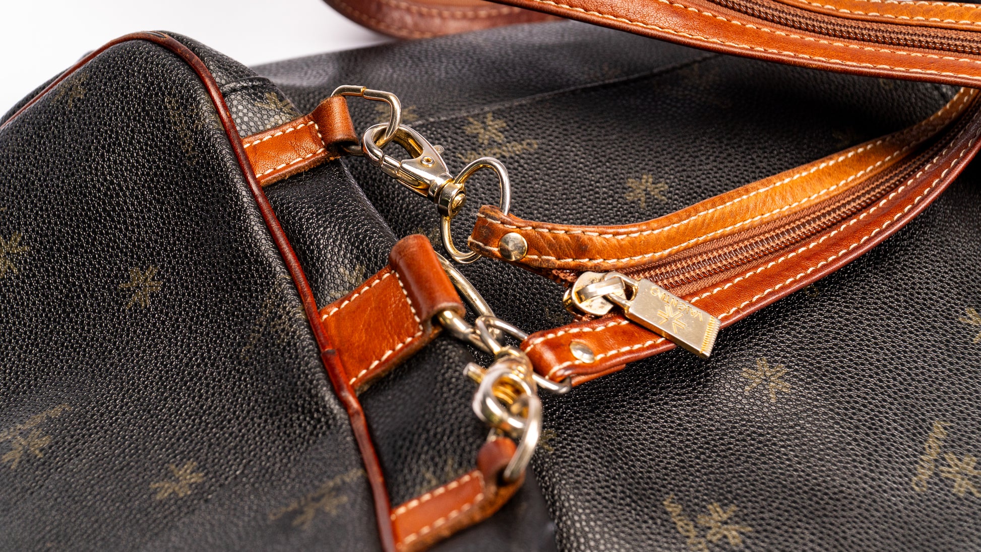 Mochila vintage em tons de castanho, com padrão. Vários bolsos exteriores com fecho éclair metálico, bolso interior e alsas removiveis.