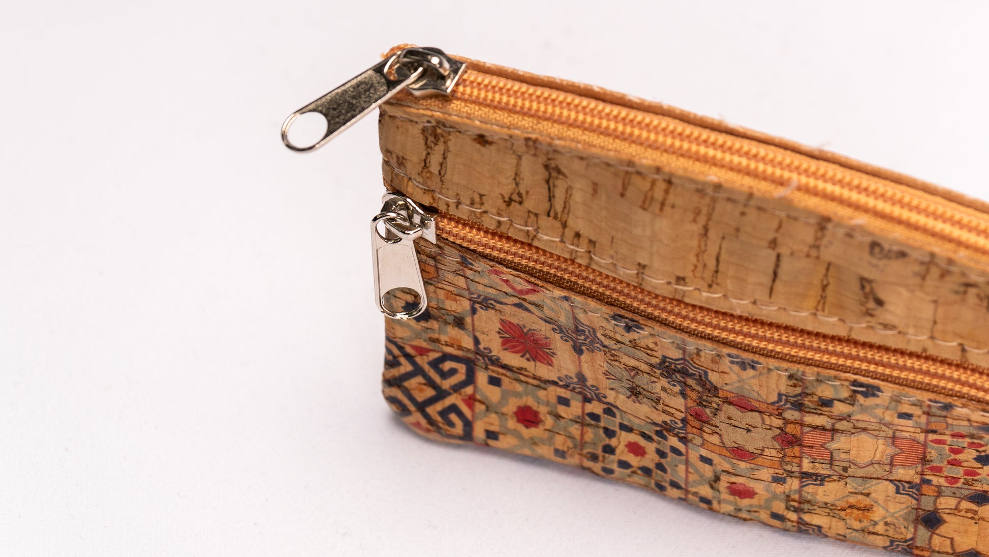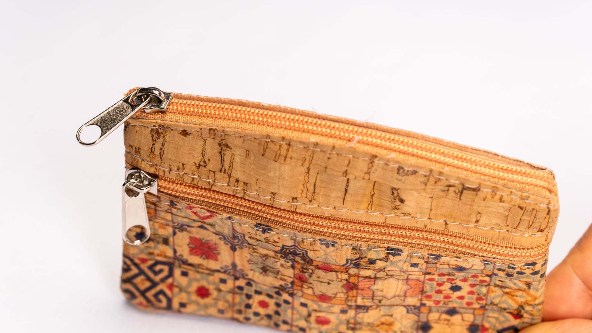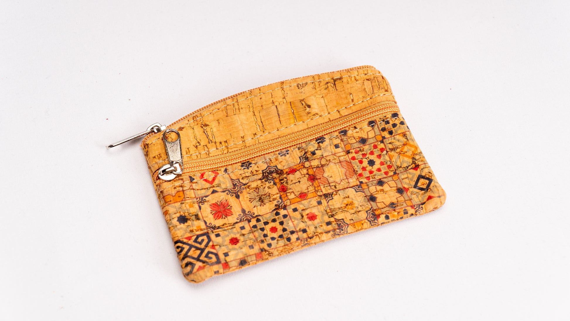 Porta moedas de cortiça, feito em Portugal, com dois compartimentos